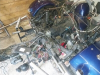 Deze winter had ik de bedrading op het programma staan omdat de motor en versnelling al in voorgaande winters waren gedaan (niet door mijzelf). Het plan Na een eerste inventarisatie van het huidige en het maken van een toekomst beeld ben ik eerst op zoek gegaan naar een nieuw onderkomen voor meerdere relais en zekeringen, want tja helaas was de "orginele" ruimte in de loop der 29 jaren vergaan, te klein en onherstelbaar. In de nogal verouderde situatie was er namelijk ook een wildgroei ontstaan van relais op verschillende plaatsen en zekeringen in de vele extra getrokken draden voor de bijgebouwde assesoires. Inventariseren van de bestaande zekeringen gaf een verbazend beeld van de verdeling en ook van de niet gezekerde atributen. ![]() ![]() Het boodschappenlijstje was dus al snel gemaakt. Nieuwe bergruimte (elektra kast), relais en relaisvoet, Zekering houders voor zeker 10 exemplaren, tape om de draden na renovatie weer te bundelen en voldoende stekers om alles weer aan te sluiten. De uitvoering Na het verwijderen van de lichtbeugel heb ik samen met mijn buurman de body van de trike verwijderd om zo heel veel beter bij al het onderliggende te kunnen komen. Dit gaf zo een goed beeld dat ik ook meteen besefte dat het steun frame voor de body en de benzine tank eraf moesten, de kabelboom loopt er namelijk mooi beschermd onderdoor. ![]() Hierna was de gehele bedrading toegankelijk voor onderzoek en heb ik de tape overal verwijderd. Het was heel verhelderend om al die losse draden te zien, zo kon ik namelijk goed inschatten welke draden ik goed kon hergebruiken om de te verplaatsen relais aan te sluiten zonder de huidige werking te veranderen (want daar was ik zeer tevreden over). Hierna ben ik dus 1 voor 1 de relais gaan verplaatsen en de aansluiting meteen te controleren zodat ik zeker wist of alles bleef werken. ![]() Mijn trike documentatie bestaat nu ook uit een elektrisch deel van welke relais of zekeringen zijn waarvoor en met welke draadkleur zijn ze aangesloten. De bedrading onder de tank was een grote wir-war van aangesloten stukjes en bij-bouwsels omdat er op het stuur mooie klokken waren geplaatst en de orginele knipper automaat was vervangen voor een elektronische. Hiervoor was niet de bedrading aangepast maar uitgebreid. ![]() Nu ik toch lekker bezig was heb ik ook de loop van de grote bos met draden naar het bediening paneel aan de zijkant verlegd zodat deze mooier zijn weg gewerkt en er een extra vereenvoudiging kon worden doorgevoerd. Het resultaat Het gevolg van al deze acties waar ik dus enkele weken mee bezig ben geweest is: A; De relais en zekeringen zijn weer mooi en veilig weggewerkt. B; De overtollige bedrading kon worden verwijderd en soms her gebruikt. C; Onder de tank is het overzichtelijker geworden. D; Risico op kortsluiting is geminimaliseerd. E; De door mijzelf geplaatste massa schakelaar kon er weer uit omdat de lekstroom verminderd is tot 0,03A. F; Onder de tank is het makkelijker om te veranderen indien nodig door gebruik van centraal steker blokken. Nu het electrische gedeelte klaar was kon ik verder met het standaard onderhoud zoals motorolie verversen, remvloeistof vervangen, remblokken wisselen en de lagers van het voorwiel vervangen wegens speling. Het lijkt erop dat ik in januari 2025 klaar zal zijn en de trike mooi kan gaan glimmen voor aanvang van het nieuwe trike seizoen. 2024Vrijdag, 12 januari 2024